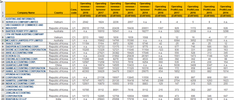 Benchmark Study through global company database from Bureau van Dijk: